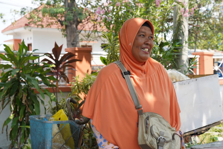 Indridiah Pangestu Ningtyas (49), salah satu orang tua murid Sekolah Rakyat Terintegrasi 7 Kota Probolinggo, pada Kamis (16/10/2025). Amiriyandi InfoPublikPanas terik Kota Probolinggo tak menyurutkan semangat Indridiah Pangestu Ningtyas (49), atau yang akrab disapa Ibu Indri. Sejak 2005, ia mengayuh sepeda tuanya menjajakan kerupuk, tisu, dan minyak oles dari kantor ke kantor, dari sekolah ke sekolah. Tak peduli hujan atau panas, tubuhnya yang kecil tampak tangguh melawan waktu dan cuaca.